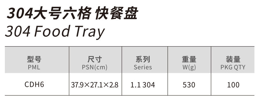 304大号六格 快餐盘